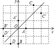 分析:建立平面直角坐标系,然后确定出点A、B、C、D,再根据网格结构找出关于直线y=x的对称点的位置,然后写出坐标即可.