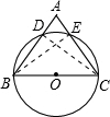 如图,在△ABC中,以BC为直径的⊙O交AB于D,交AC于E,BD=CE.