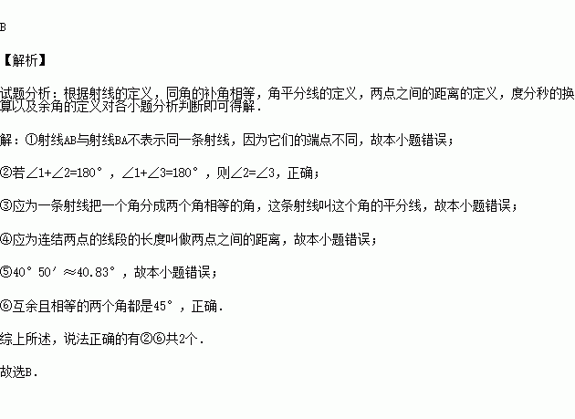 ②若∠1+∠2=180°,∠1+∠3=180°,则∠2=∠3.