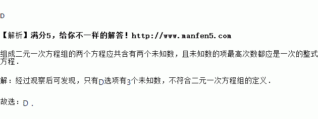 科目:初中数学 来源:北师大版八年级上册5.1《认识二元一次方程组》 题型:单选题
