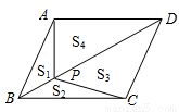 在平行四边形ABCD中,P为对角线BD上任意一点,连接PA、PC,得到△PAB、△PBC、△PCD、△PDA,设它们的面积分别是