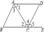 如下图,下列条件中:①∠B+∠BCD=180°;②∠1=∠2;③∠3=∠4;④∠B=∠5,能判定AB∥CD的条件为( )