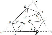 如图,把一个三角形纸片ABC顶角向内折叠3次之后,3个顶点不重合,那么图中∠1+∠2+∠3+∠4+∠5+∠6的度数和是