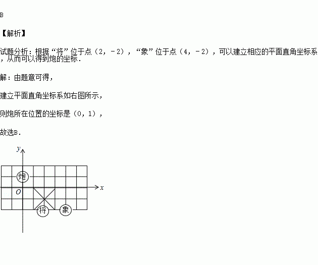 如图所示,若在某棋盘上建立直角坐标系,使“将”位于点(2,﹣2),“象”位于点(4,﹣2),则“炮”位于点( )