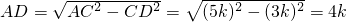 设CD=3k,则AB=AC=5k,