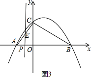 (3)当点P在y轴或y轴右侧时,设直线与BC交与点D,先求出S△BOC,再根据△BPD∽△BOC,得出$\frac{{S}_{△BDP}}{{S}_{△BOC}}$=($\frac{BP}{BO}$)2,$\frac{{S}_{△BPD}}{6}$=($\frac{4-t}{4}$)2,求出S=S△BPD;当点P在y轴左侧时,设直线与AC交与点E,根据$\frac{{S}_{△APE}}{{S}_{△AOC}}$=($\frac{AP}{AO}$)2,得出$\frac{{S}_{△APE}}{3}$=($\frac{AP}{AO}$)2,求出S=S△ABC-S△APE=9-$\frac{3(t+2)^{2}}{4}$,再整理即可.