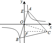 分析 根据反比例函数的性质得出OA=OB,连接OC,过点A作AE⊥y轴,垂足为E,过点C作CF⊥y轴,垂足为F,根据等边三角形的性质和解直角三角形求出OC=$\sqrt{3}$OA,求出△OFC∽△AEO,相似比$\frac{OC}{OA}=\sqrt{3}$,求出面积比$\frac{{{S_△}_{OFC}}}{{{S_△}_{AEO}}}=3$,求出△OFC的面积,即可得出答案.