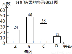 (1)这次抽取的样本的容量为 ;图①中“D级”对应的扇形圆心角度数为 °