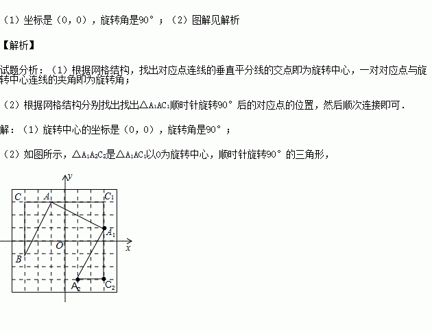(1)请写出旋转中心的坐标是 ,旋转角是 度;