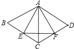 分析 先利用菱形的性质得到BC=CD=AB=AD=8,∠B=60°,∠D=60°,则可判断△ABC和△ACD都为等边三角形,则根据等边三角形的性质得∠EAC=30°,∠FAC=30°,CE=BE=4,CF=FD=4,所以∠EAF=60°,根据含30度的直角三角形三边的关系可得AE=$\sqrt{3}$CE=4$\sqrt{3}$,AF=$\sqrt{3}$CF=4$\sqrt{3}$,于是可判断△AEF为等边三角形,然后根据等边三角形的面积公式求解.