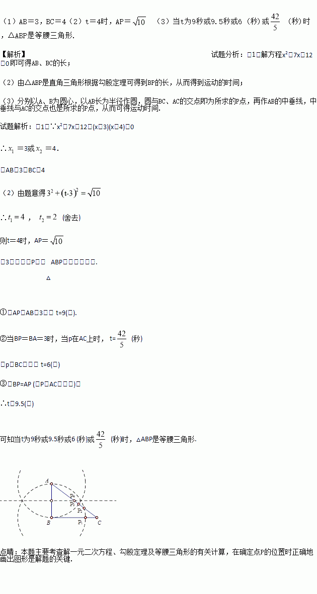 +12=0的两个根.点P从点A出发,以每秒1个单位的速度沿△ABC边 A→B→C→A的方向运动,运动时间为t(秒).