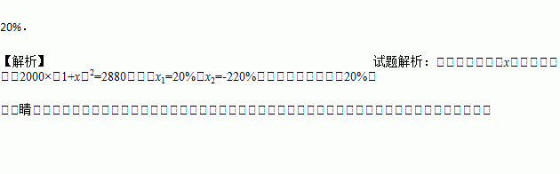 某小区2015年屋顶绿化面积为2000平方米,计划2017年屋顶绿化面积要达到2880平方米.如果每年屋顶绿化面积的增长率相同,那么这个增长率是_________.