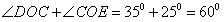 如图,OD平分∠BOC,OE平分∠AOC。若∠BOC=70°,∠AOC=50°。