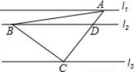 如图,直线l1∥l2∥l3,等腰Rt△ABC的三个顶点A,B,C分别在l1,l2,l3上,∠ ACB=90°,AC交l2于点D,已知l1与l2的距离为1,l2与l3的距离为3,则AB:BD的值为( )
