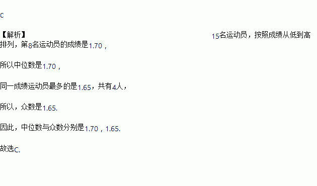 在一次中学生田径运动会上,参加男子跳高的15名运动员的成绩如下表所示:
