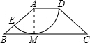 如图,等腰梯形ABCD中,AD∥BC,以A为圆心,AD为半径的圆与BC切于点M,与AB交于点E,若AD=2,BC=6,则数学公式的长为________(结果保留π).