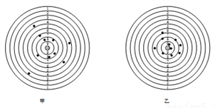 在一次飞镖比赛中,甲、乙两位选手各扔10次飞镖,下图记录了他们的比赛结果.你认为两人中技术更好的是__________,你的理由是_____________________________.