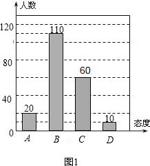 (2)态度为C的人数为200-20-110-10=60人,如图,
