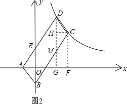 (2)分别过C、D作x轴的垂线,垂足为F、G,过C点作CH⊥DG,垂足为H,根据CD∥AB,CD=AB可证△CDH≌△ABO,则CH=AO=1,DH=OB=2,由此根据点D的坐标求得点C的坐标;