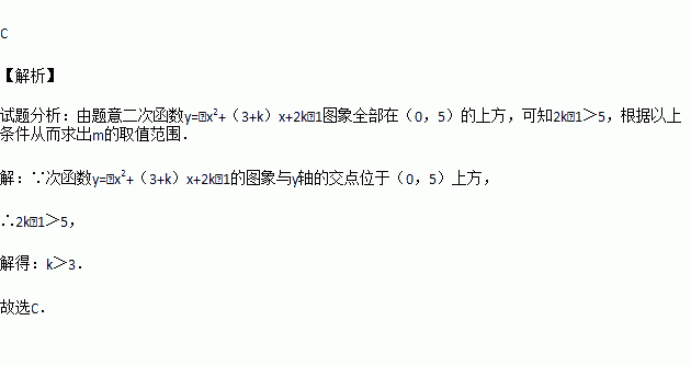 二次函数y=﹣x2+(3+k)x+2k﹣1的图象与y轴的交点位于(0,5)上方,则k的范围是( )