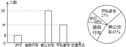“低碳生活,绿色出行”是我们倡导的一种生活方式,有关部门抽样调查了某单位员工上下班的交通方式,绘制了如下统计图: