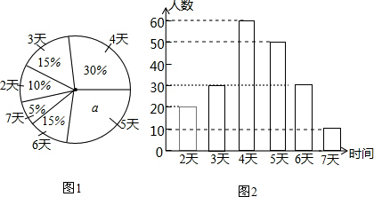 (2)活动时间为5天的人数为200×25%=50(人),活动时间为7天的人数为200×5%=10(人),