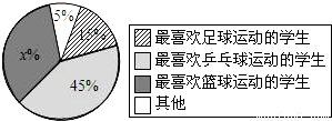 (2)求最喜欢乒乓球运动的学生人数;