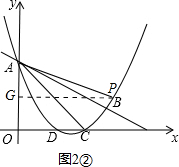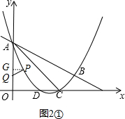 £¨¢ò£©£¨1£©¹ýµãP×÷PG¡ÍyÖáÓÚG£¬Ôò¡ÏPGA=90¡ã£®ÉèµãPµÄºá×ø±êΪx£¬ÓÉPÔÚyÖáÓÒ²à¿ÉµÃx£¾0£¬ÔòPG=x£¬Ò׵áÏAPQ=¡ÏACB=90¡ã£®ÈôµãGÔÚµãAµÄÏ·½£¬¢Ùµ±¡ÏPAQ=¡ÏCABʱ£¬¡÷PAQ¡×¡÷CAB£®´Ëʱ¿ÉÖ¤µÃ¡÷PGA¡×¡÷BCA£¬¸ù¾ÝÏàËÆÈý½ÇÐεÄÐÔÖʿɵÃAG=3PG=3x£®ÔòÓÐP£¨x£¬3-3x£©£¬È»ºó°ÑP£¨x£¬3-3x£©´úÈëÅ×ÎïÏߵĽâÎöʽ£¬¾Í¿ÉÇó³öµãPµÄ×ø±ê¢Úµ±¡ÏPAQ=¡ÏCBAʱ£¬¡÷PAQ¡×¡÷CBA£¬Í¬Àí£¬¿ÉÇó³öµãPµÄ×ø±ê£»ÈôµãGÔÚµãAµÄÉÏ·½£¬Í¬Àí£¬¿ÉÇó³öµãPµÄ×ø±ê£»£¨2£©¹ýµãE×÷EN¡ÍyÖáÓÚN£¬Èçͼ3£®Ò×µÃAE=$\sqrt{2}$EN£¬ÔòµãMÔÚÕû¸öÔ˶¯ÖÐËùÓõÄʱ¼ä¿É±íʾΪ$\frac{DE}{1}$+$\frac{EA}{\sqrt{2}}$=DE+EN£®×÷µãD¹ØÓÚACµÄ¶Ô³ÆµãD¡ä£¬Á¬½ÓD¡äE£¬ÔòÓÐD¡äE=DE£¬D¡äC=DC£¬¡ÏD¡äCA=¡ÏDCA=45¡ã£¬´Ó¶ø¿ÉµÃ¡ÏD¡äCD=90¡ã£¬DE+EN=D¡äE+EN£®¸ù¾ÝÁ½µãÖ®¼äÏß¶Î×î¶Ì¿ÉµÃ£ºµ±D¡ä¡¢E¡¢NÈýµã¹²Ïßʱ£¬DE+EN=D¡äE+EN×îС£®´Ëʱ¿ÉÖ¤µ½ËıßÐÎOCD¡äNÊǾØÐΣ¬´Ó¶øÓÐND¡ä=OC=3£¬ON=D¡äC=DC£®È»ºóÇó³öµãDµÄ×ø±ê£¬´Ó¶øµÃµ½OD¡¢ON¡¢NEµÄÖµ£¬¼´¿ÉµÃµ½µãEµÄ×ø±ê£®