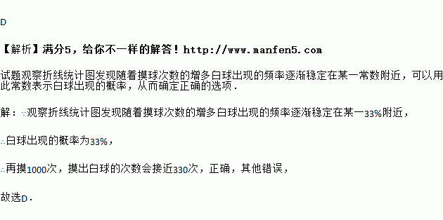 D. ÔÙÃþ1000´Î£¬Ãþ³ö°×ÇòµÄ´ÎÊý»á½Ó½ü330´Î