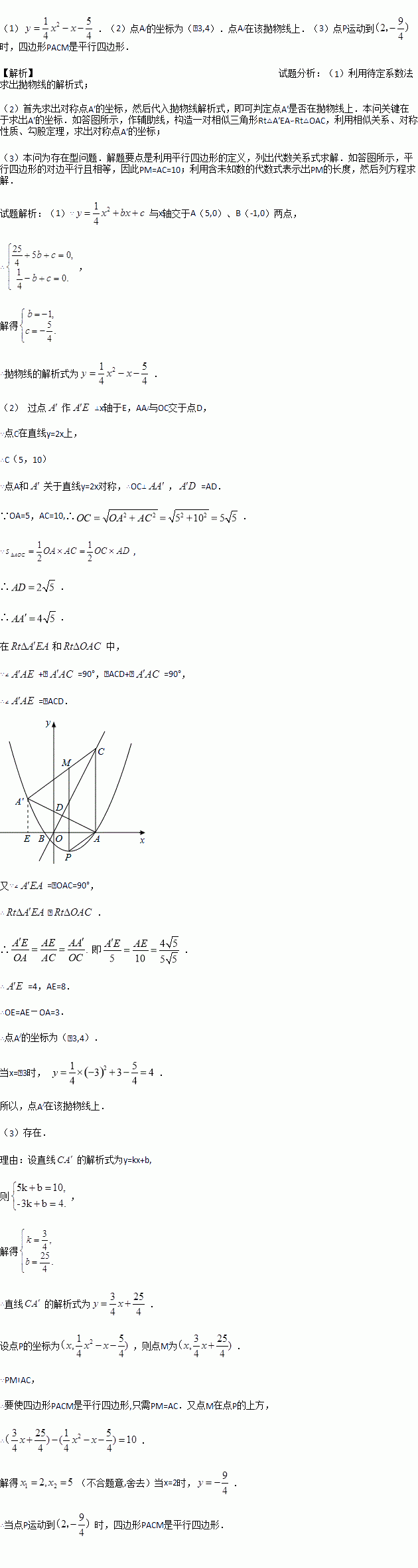 (2)求点A关于直线y=2x的对称点A′的坐标,判定点A′是否在抛物线上,并说明理由;