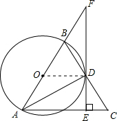 分析 (1)连接OD,根据OA=OD和角平分线性质得出∠ODA=∠DAE,推出OD∥AC,得出∠ODE=90°,根据切线的判定推出即可;