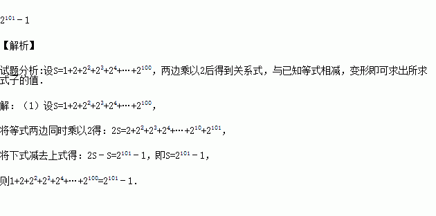 设S=1+2+22+23+24+…+22012+22013,将等式两边同时乘以2得: