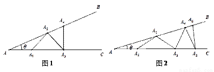 某数学兴趣小组开展了一次活动,过程如下:设∠BAC=θ(0°<θ<90°).现把小棒依次摆放在两射线AB、AC之间,并使小棒两端分别落在两射线上,从点A1开始,用等长的小棒依次向右摆放,其中A1A2为第1根小棒,且A1A2=AA1.