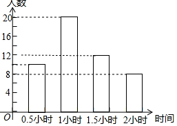 £¨2£©»§Íâ»î¶¯Ê±¼äΪ1СʱµÄÈËÊýÕ¼×ÜÈËÊýµÄ°Ù·Ö±ÈΪ£º$\frac{20}{50}•100%=40%$£¬