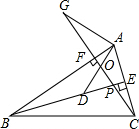 分析:求出∠ABD=∠AG,证△ABD≌△GCA,推出AG=AD,∠AGC=∠BAD,根据∠AFO=90°求出∠BAD+∠AOF=90°,推出∠AGC+∠AOF=90°,求出∠GAD=90°,即可得出答案.