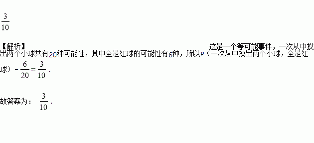 一个不透明的袋子里装有除颜色不同外其他都相同的5个小球,其中红球3个、白球2个,一次从中摸出两个小球,全是红球的概率为________________.