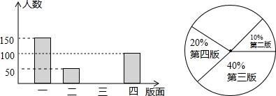 5.某校学生会为了解该校学生对校报四个版面的喜欢程度,对部分学生作了一次问卷调查,要求他们选出自己最喜欢的一个版面.宣传部部长将收回的问卷进行了整理,并根据所得的数据绘制成如下不完整的条形统计图和扇形统计图,请根据统计图回答下列问题: