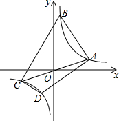 4.如图,在平面直角坐标中,四边形ABCD的四个顶点都在双曲线y=$\frac{1}{x}$上,其中,点A、B在第一象限,点C、D在第三象限,对角线AC经过原点O,求证:∠BAD=∠BCD.