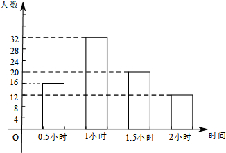 (2)利用总人数乘以百分比即可求得时间是0.5小时的一组的人数,即可作出直方图;