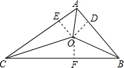 分析:先过点O作OD⊥AB,OE⊥AC,OF⊥BC于点D、E、F,再根据角平分线的性质得出OD=OE=OF,由三角形的面积公式即可得出结论.
