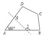 如图,四边形ABCD中,若去掉一个60°的角得到一个五边形,则∠1+∠2=_______度.