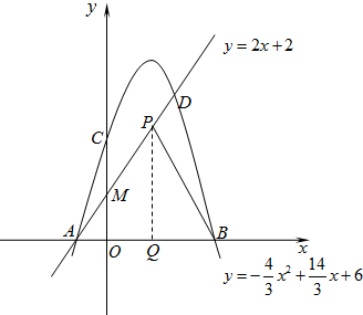 分析 (1)根据点D在直线y=2x+2上,且点D的横坐标为3,求出点D的坐标;根据点A在x轴上,且在直线y=2x+2上,即可求出点A的坐标;将点A、点D的横纵坐标代入二次函数解析式即可;
