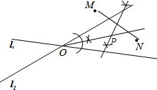 如图,在平面内求作一点P,使点P到点M、点N的距离相等,且到直线l1和l2的距离相等.