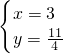 4y=11,