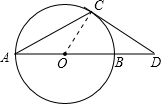 分析 连接OC,构建直角三角形,根据切线的性质,推出∠A,∠D的度数,即可推出结论.