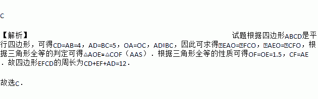 ABCD的对角线AC,BD相交于O,EF过点O与AD,BC分别相交于E,F,若AB=4,BC=5,OE=1.5,那么四边形EFCD的周长为( )