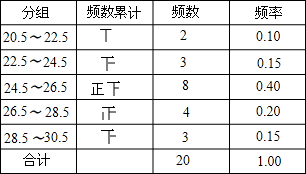 | 分组(含最小值,不含最大值) | 21-23 | 23-25 | 25-27 | 27-29 | 29-31 |