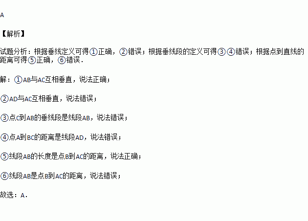 ⑥线段AB是点B到AC的距离.
