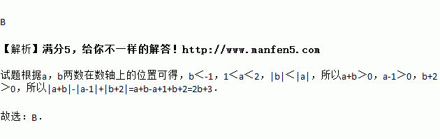 已知a,b两数在数轴上的位置如图所示,化简式子|a+b|-|a-1|+|b+2|的结果是( )