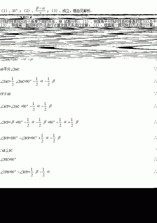如图①,△ABC中,AD平分∠BAC交BC于点D,AE⊥BC,垂足为E, CF∥AD.